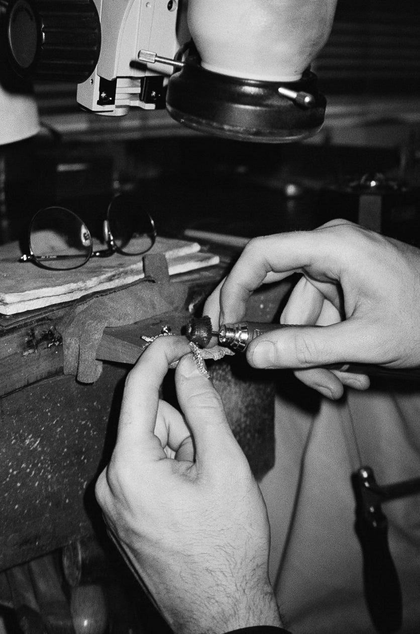 Before founding his own brand in 2020, Harrison worked as a craftsman at Queensmiths. There, he was introduced to cutting-edge techniques, including the use of microscopes for precision work and the advantages of CAD casting technology, which greatly influenced his approach to modern jewellery design.
